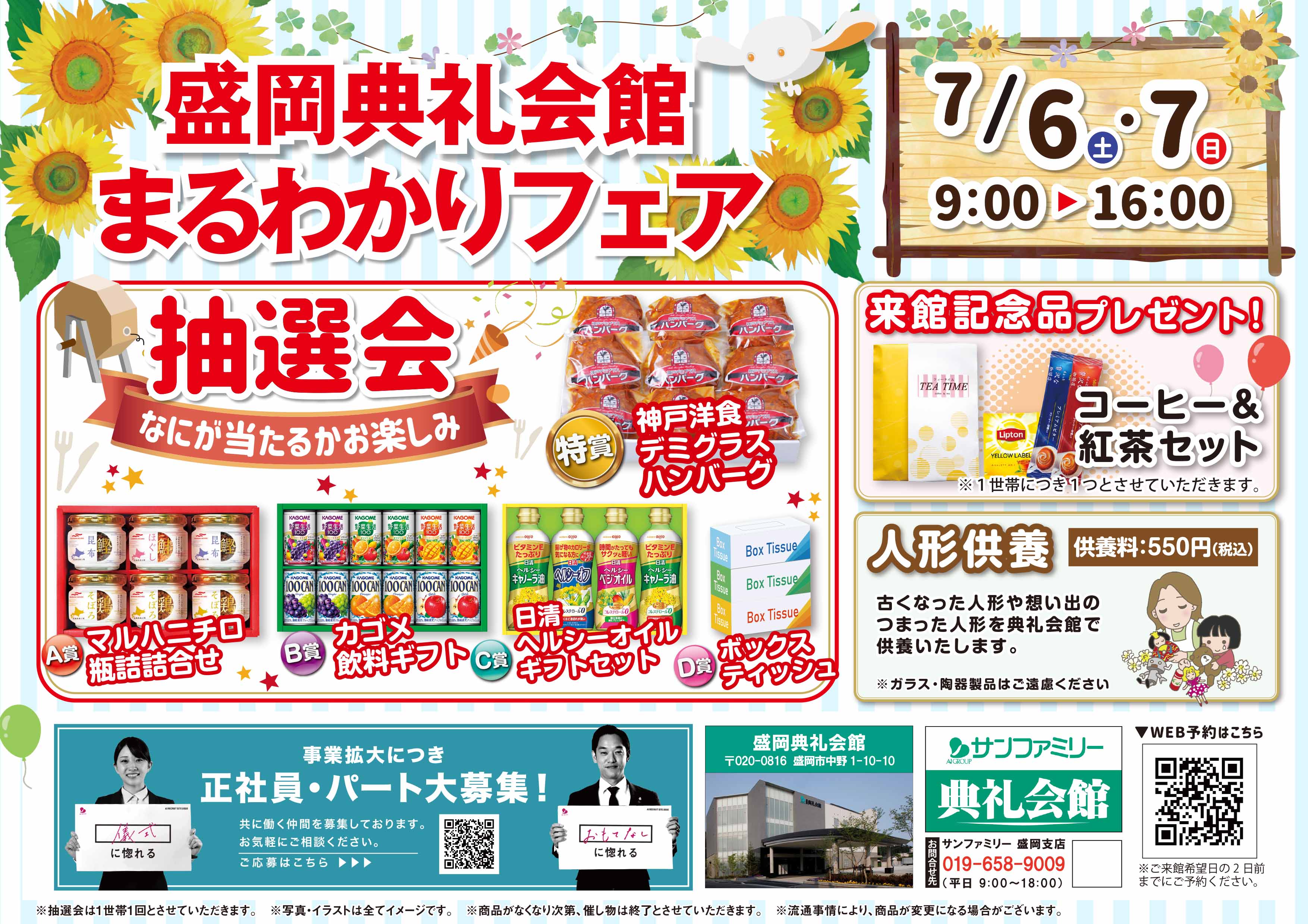 7/6(土)・7(日)9:00~16:00 盛岡典礼会館(盛岡市中野1丁目10-10 TEL019-626-6660) にて